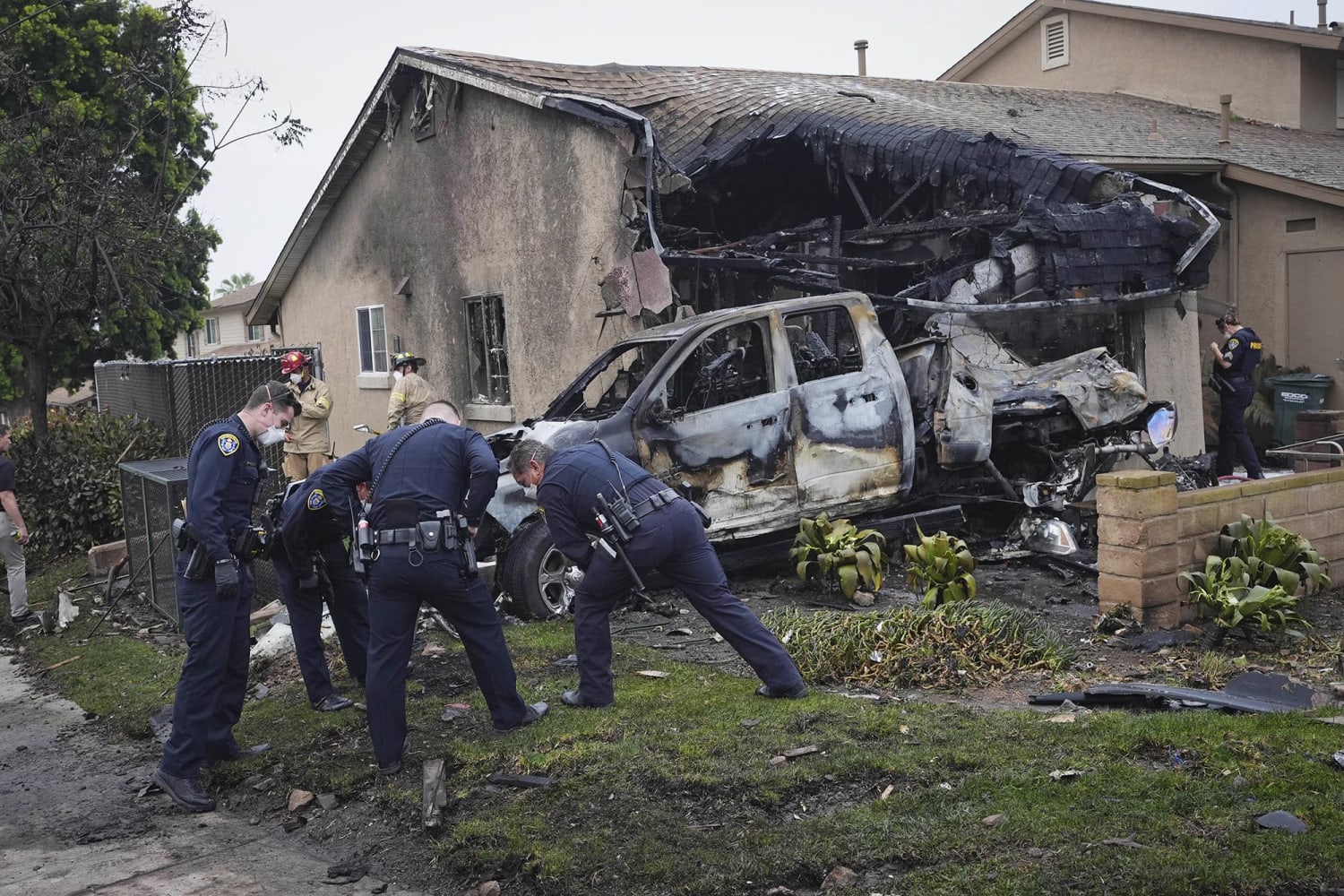 Authorities have confirmed six people were aboard the plane, but only the above two have been identified. The crash also damaged around 10 structures in the Murphy Canyon area, police said, setting multiple homes, some belonging to military families, and cars on fire while spilling fuel everywhere.